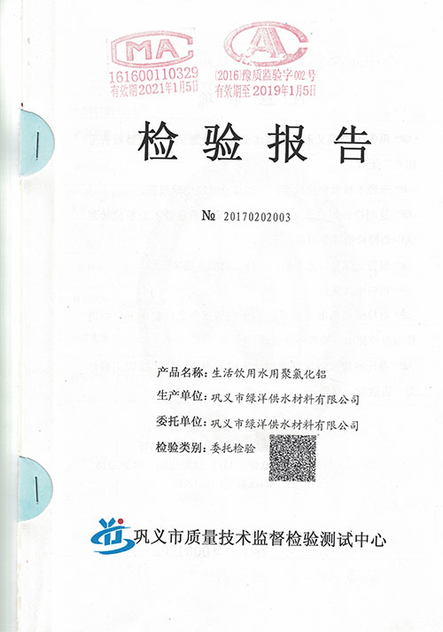 飲用水用聚氯化鋁檢驗(yàn)報(bào)告